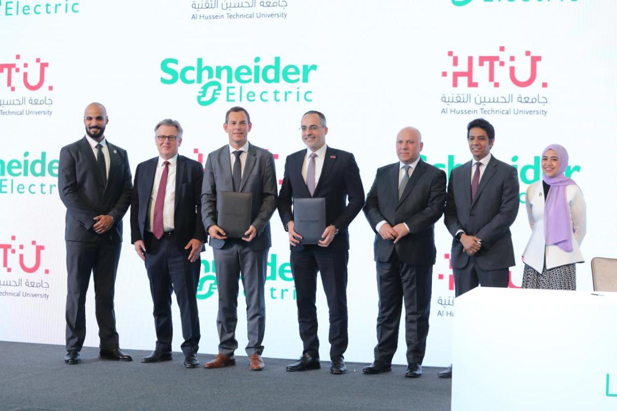 وفي إطار التزامها بتعزيز الاستدامة من خلال دعم المجتمعات المحلية وتمكين الأجيال، وقعت شنايدر إلكتريك مذكرتي تفاهم مع جامعة الحسين التقنية (HTU) ودار أبو عبد الله (DAA). تهدف مذكرة التفاهم مع جامعة الحسين التقنية لتوفير التدريب العملي لطلاب الجامعة داخل منشآت الشركة وإعدادهم للانضمام إلى سوق العمل بسهولة، بالإضافة إلى تقديم جلسات تدريبية وفرص عمل للخريجين المتميزين. أما مذكرة التفاهم الثانية مع مؤسسة "دار أبو عبد الله"، تهدف لتنفيذ حلول مستدامة لمشروع الزراعة المائية في مزرعة الدار بمنطقة "الربّة" التابعة للمؤسسة بداخل جامعة مؤتة. يشمل المشروع تركيب نظام "Water of the Sun" لضخ المياه بالطاقة الشمسية ورفعها من البئر غير المستخدم حاليا في الجامعة لري 21 صوبة زراعية، إضافة إلى تفعيل نظام EcoStruxure للتحكم والرصد عن بُعد باستخدام إنترنت الأشياء. كما يتضمن المشروع وحدة لتخصيب وري التربة وإعادة تدوير المخلفات الزراعية في الصوب الزراعية، باستخدام الطاقة الشمسية لتحويل المخلفات إلى سماد عضوي ليتم استخدامه في الصوب الزراعية والمجتمعات المجاورة لجامعة مؤتة، مما يعزز التكامل بين قطاعات الطاقة والمياه والغذاء "Energy, Water, and Food Nexus" لمواجهة تحديات ندرة المياه في الأردن.