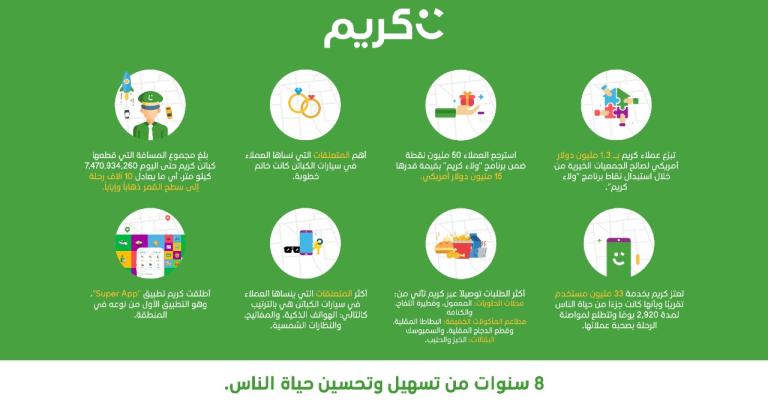 في عام 2012، بدأت الرحلة من مدينة دبي، ومنها انطلقت "كريم" لتصل اليوم إلى 100 مدينة في 13 بلدًا في الشرق الأوسط وشمال إفريقيا والباكستان. تحتفل "كريم" في شهر يوليو الجاري بعيد ميلادها الثامن، وبهذه