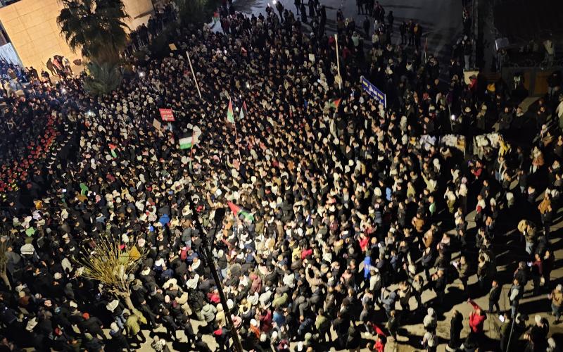 الآف الاردنيين يحيطون بسفارة الاحتلال الإسرائيلي (شاهد)