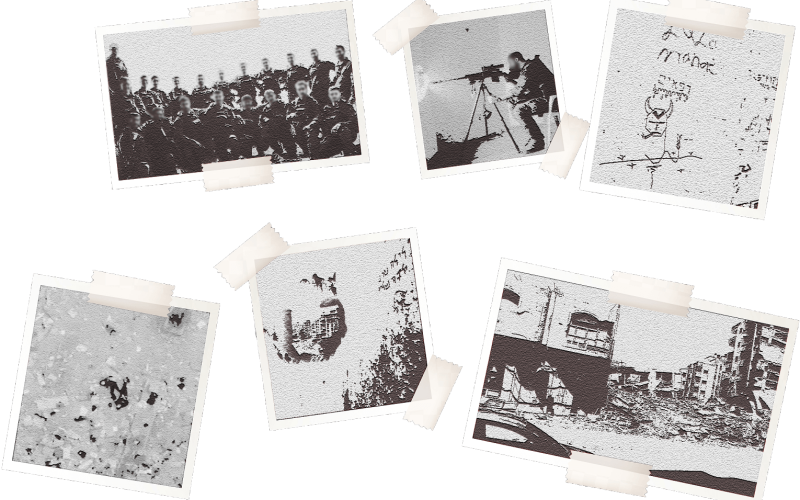 أدلة إضافية على وجود القناصين؛ رسومات على الجدران: الرقم 9 مع قرون الشيطان وذيله. وهي شعار غير رسمي لمجموعة قناصي "الشبح" رفائيم.