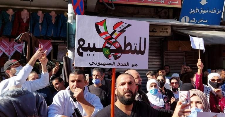 انطلقت مسيرة بعد صلاة ظهر الجمعة من أمام المسجد الحسيني في منطقة وسط البلد، وذلك احتجاجا على اتفاقيات التطبيع التي يوقعها الأردن مع الاحتلال الاسرائيلي. وندد المشاركون بالخطوات والاتفاقيات التي من