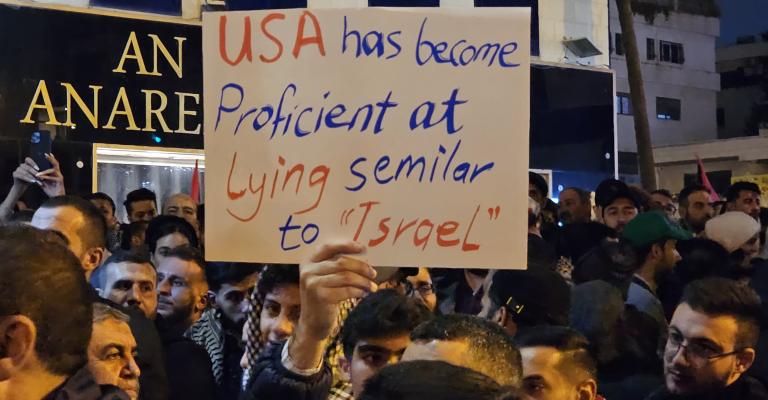 لليوم الرابع على التوالي، تواصل جماهير الأردنيين التوافد لمحيط سفارة العدو الصهيوني بعد صلاة التراويح بدعوات من ملتقيات دعم المقاومة. وتصاعدت وتيرة الاحتجاجات بشكل ملحوظ بعد بدء العدوان على غزة. أصدر