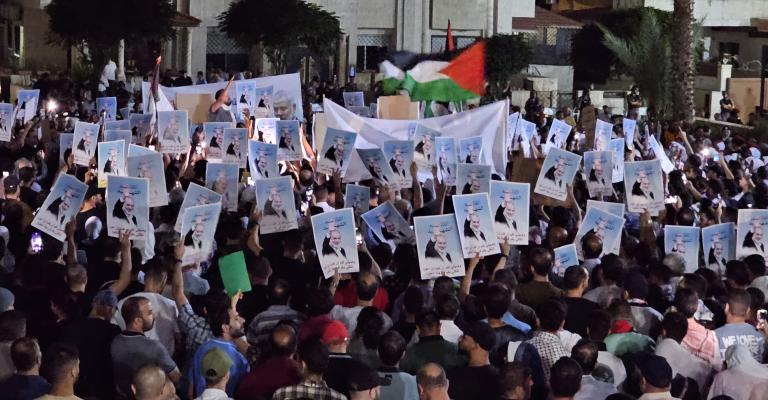اعتصم الاف الاردنيين مساء الأربعاء في ساحة المسجد الكالوتي قرب سفارة الكيان الصهيوني في العاصمة عمان، وذلك تنديدا بجريمة اغتيال رئيس المكتب السياسي لحركة المقاومة الإسلامية (حماس)، الشهيد اسماعيل هنية