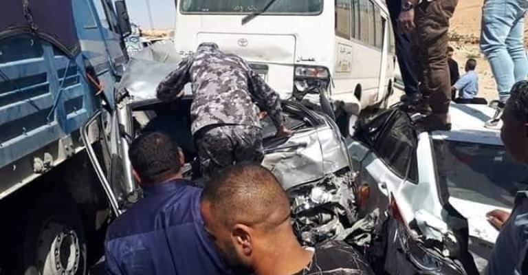 قال الناطق الاعلامي باسم مديرية الامن العام انه وقع حادث تصادم بين ثماني مركبات على الطريق الصحراوي / منطقة ضبعة نتج عن الحادث اربع وفيات وعشرون اصابة،واحدة منها بليغة . واضاف الناطق الاعلامي ان فرق