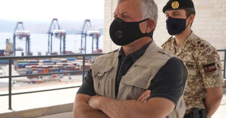 تفقد الملك عبدالله الثاني، يرافقه سمو الأمير الحسين بن عبدالله الثاني ولي العهد، اليوم الاثنين، حركة الشحن ونقل البضائع في ميناء الحاويات في العقبة. وأكد على ضرورة إدامة عملية التخليص على البضائع،
