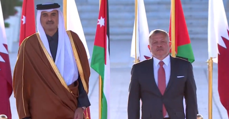 استقبل الملك عبدالله الثاني، الشيخ تميم بن حمد آل ثاني، أمير دولة قطر الشقيقة الذي وصل إلى عمان اليوم الأحد، في زيارة رسمية للمملكة. ويجري الملك مع سمو الشيخ تميم، مباحثات تتناول العلاقات الأخوية بين