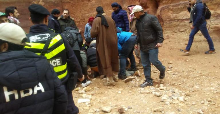 توفي سائح ايطالي (32 عاما) إثر سقوط حجر عليه من مرتفع في البترا صباح اليوم الخميس، وتم إسعافه على الفور إلى مستشفى الملكة رانيا العبدالله. وقال مصدر أمني، إن سقوط الحجر تسبب بكسر في الجمجمة، ما أدى