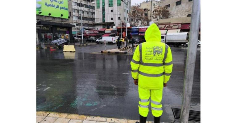 واصلت كوادر وآليات امانة عمان تعاملها مع تداعيات الظروف الجوية السائده والعمل بأقصى طاقاتها؛ لضمان إدامة مسارب الشوارع الرئيسية سالكه وانسياب المياه باتجاه مناهل تصريف مياه الامطار من خلال المتابعة