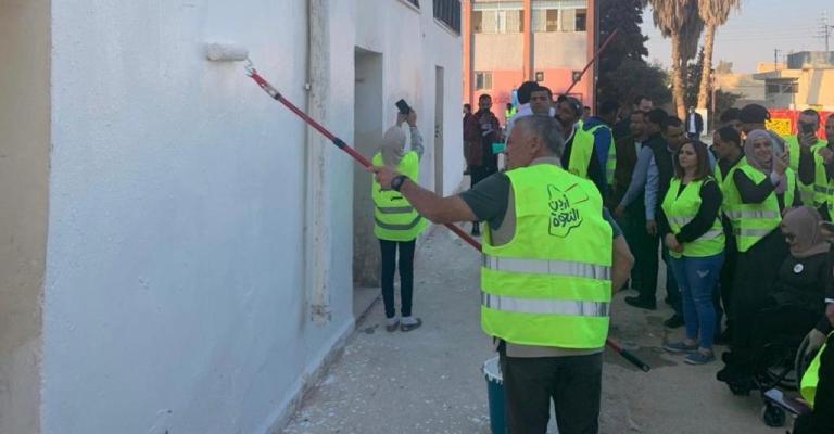 فاجأ جلالة الملك عبدالله الثاني مجموعة من المتطوعين من بينهم عدد من ذوي الاحتياجات الخاصة بزيارة أثناء مشاركتهم بأعمال الصيانة لمدرسة الحلابات الشرقي الثانوية للبنين في منطقة الحلابات في محافظة