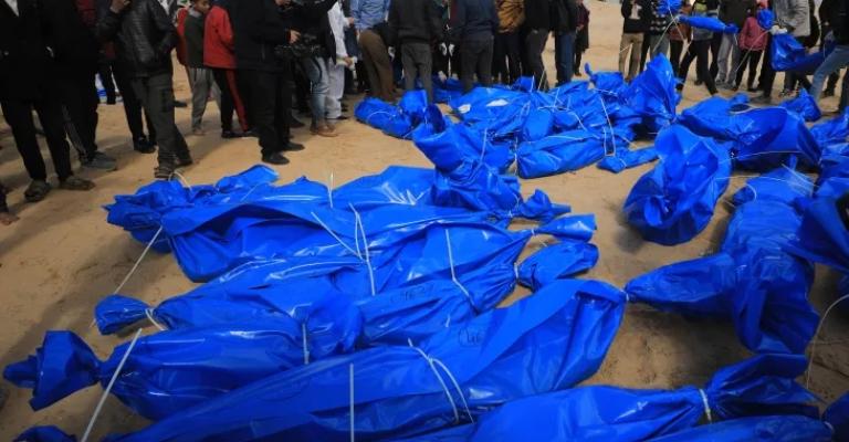 بثّت قناة الجزيرة صورا لعمليات انتشال جثامين شهداء متحللة عُثر عليها مكبلة الأيدي في مدرسة حمد شمالي قطاع غزة.وقال نادي الأسير الفلسطيني إن العثور على جثامين 30 شهيدا مكبلين، دليل واضح على "جريمة