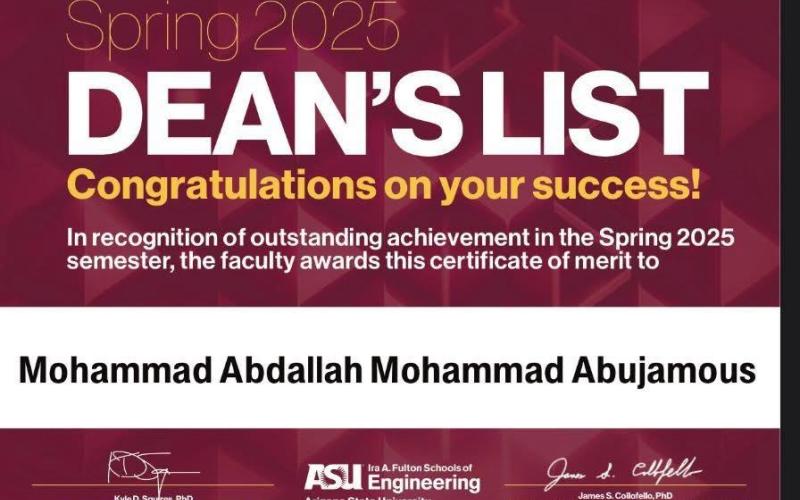 الطالب الأردني محمد عبد الله أبو جاموس يحقق معدلًا قياسيًا في جامعة أريزونا