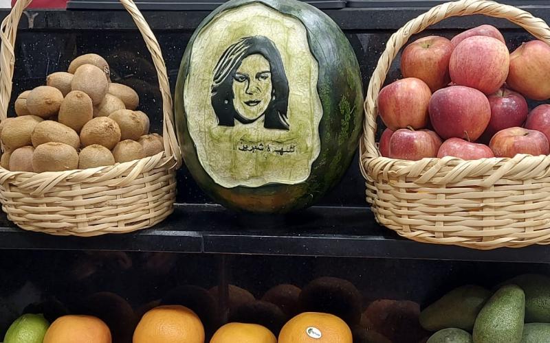 آخرهم شيرين أبو عاقلة .. شاب أردني يحوّل الفواكه للوحات فنية بصور المشاهير والزعماء