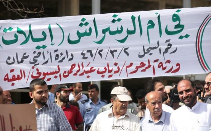 المتحدث باسم أحد مالكي أراضي "أم الرشراش" مصطفى البسيوني يوضح لـ "عمان نت" ان جده كان يمتلك أرضا في هذه المنطقة، حتى دخول الجيش الاسرائيلي واحتلالها عام 1949 وتهجير سكانها بالقوة، الا ان جده كان يحصل على تصريح من قبل الجهات الامنية الاردنية للسماح له بدخول أرضه ..