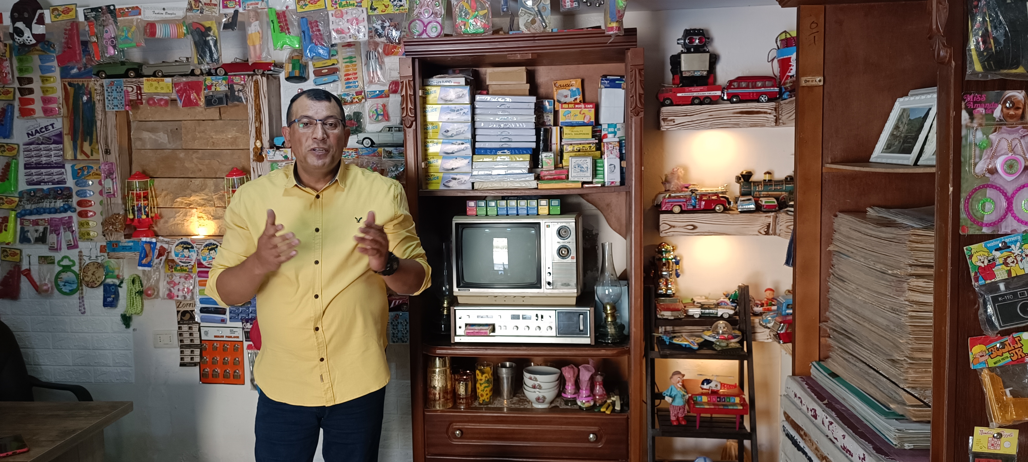 يقول "، "أغلب هذه المقتنيات قمت بجمعها بنفسي، وجزء بسيط قمت بشرائه بعد أن بعت الخردوات لهذه الغاية، عندما كان الطلاب يتخلصون من كتبهم وألعابهم في التسعينات كنت انا احتفظ بها وبكل ما هو قديم داخل مخبأ خاص في منزلي كوني كنت أعلم أن هذه الأشياء سيكون لها قيمة و إرث مهم توثق مرحلة من تاريخنا وطفولتنا التي تعرف بالزمن الجميل".