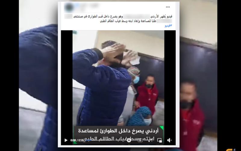 نشرت وسيلة إعلام عربية، تغطي قضايا الأردن، مقطعًا مصوّرًا عبر صفحتها الموثقة على موقع التواصل الاجتماعي "فيسبوك"، يظهر فيه مواطن "يصرخ" طالبًا إنقاذ ابنته المستلقية على سرير في قسم الطوارئ.