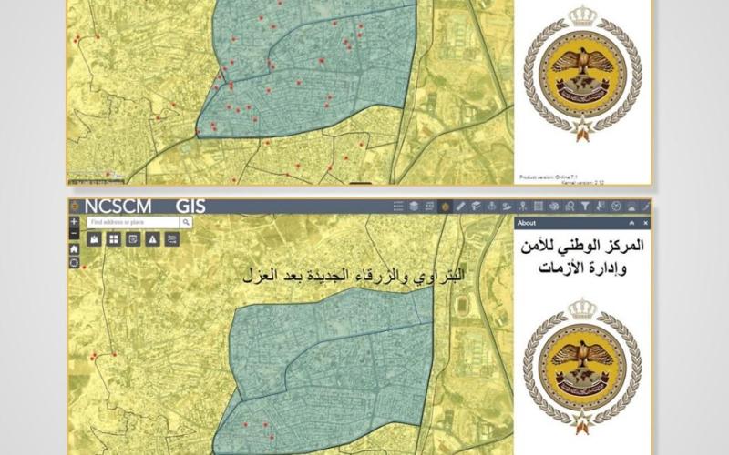 أوضحت صور من نظام الخرائط الجغرافية GIS، لدى المركز الوطني للأمن وإدارة الأزمات، التراجع في أعداد الإصابات في منطقة الزرقاء الجديد والتي تم تنفيذ إجراءات عزل وحظر شامل فيها.
