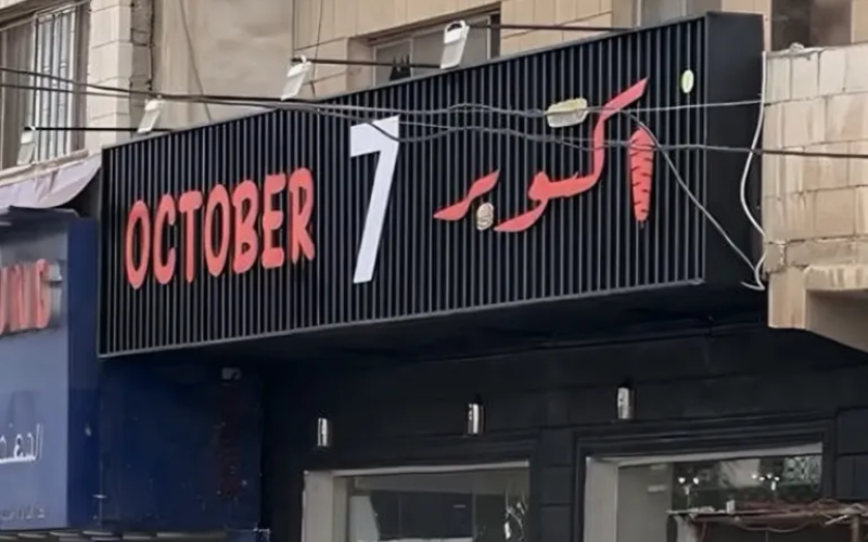 إزالة لافتة لمطعم في الكرك سُمي ب 7 اكتوبر لعدم حصوله على ترخيص من قبل غرفة الصناعة والتجارة وبعد تغريدات من قبل مسؤوليين اسرائيليين بأن الأسم يحمل دلالات سياسية يثير رواد مواقع التواصل الاجتماعي