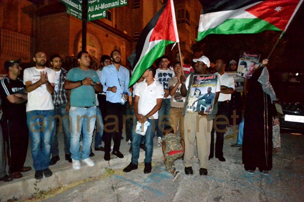 وفي وقت لاحق من مساء الخميس، نفذ الحراك الشبابي الأردني للتضامن مع الأسرى وعدد من المتضامنين مع قضية الأسرى، وقفة احتجاجية أمام السفارة الإسرائيلية، تنديداً بعزل الأسرى المضربين عن الطعام في أحد مستشفيات الأمراض النفسية والتضييق على محاميهم بالزيارات.