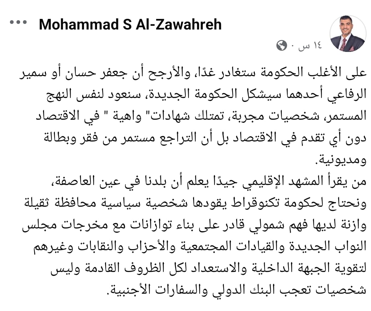 استقالة حكومة الخصاونة الأحد حديث مواقع التواصل.. استمع