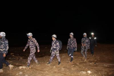 وأكد ان فرق الدفاع المدني المتخصصة وبمساندة من شرطة معان وقوات الدرك مستمرة بعمليات البحث والتمشيط في مناطق متعددة على امتداد مجرى السيل ، ولا تزال عمليات البحث جارية منذ الاحد.