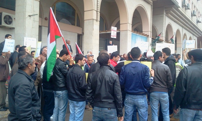 وهتفوا مطالبين بقطع العلاقات الدبلوماسية بين الاردن واسرائيل " لا سفارة صهيونية على ارض اردنية" و" لا سفارة للكيان على أرضك يا عمان".