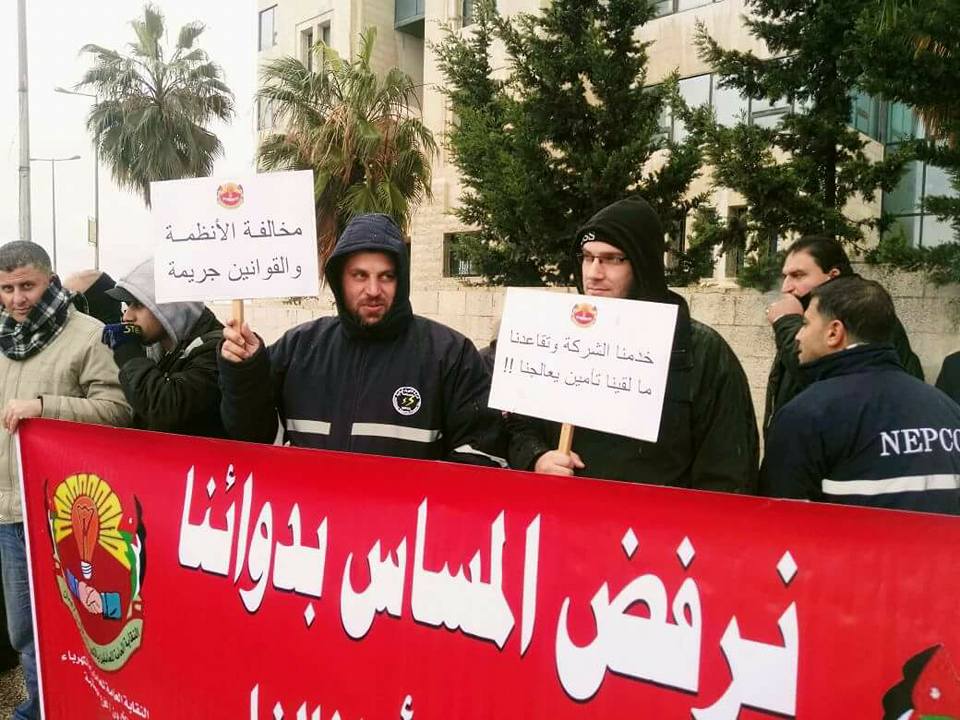 نفذ عمال شركتي الكهرباء الوطنية وتوليد السمرا اعتصاما صباح الأربعاء أمام رئاسة الوزراء ، وذلك احتجاجا على رفض شمولهم بالتأمين الصحي الحكومي.