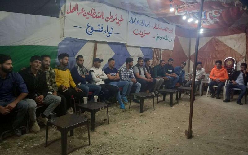 المرصد العمالي الأردني -يواصل نحو 40 متعطلا عن العمل في لواء فقوع بمحافظة الكرك اعتصامهم داخل خيمتهم لليوم الـ94 على التوالي، للمطالبة بتوفير فرص عمل لائق لهم.