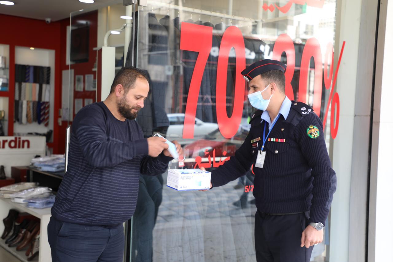الأمن العام يطلق حملة توعوية ( يدا بيد) ويوزع الاف الكمامات على المواطنين
