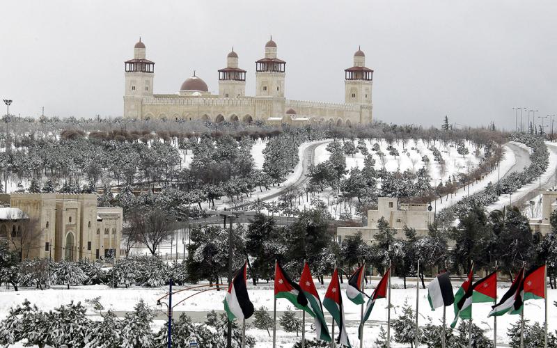 كما تهطل زخات متقطعة من الثلج فوق قمم الجبال العالية وبشكل محدود، مع احتمال حدوث تراكمات خفيفة خاصة فوق قمم الجبال الجنوبية ، وتكون الرياح شمالية غربية نشطة السرعة مع هبات قوية أحياناً مثيرة للغبار في مناطق البادية.
