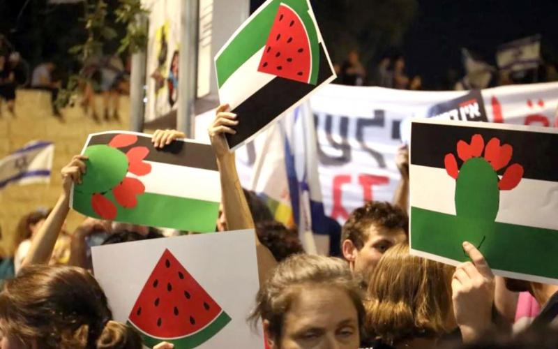 وأضافت أن متظاهرين حملوا لافتات بألوان العلم الفلسطيني وعليها بطيخة أو كلمة “حرية” لأن وزير الأمن الإسرائيلي، إيتمار بن غفير، منع رفع الأعلام الفلسطينية.