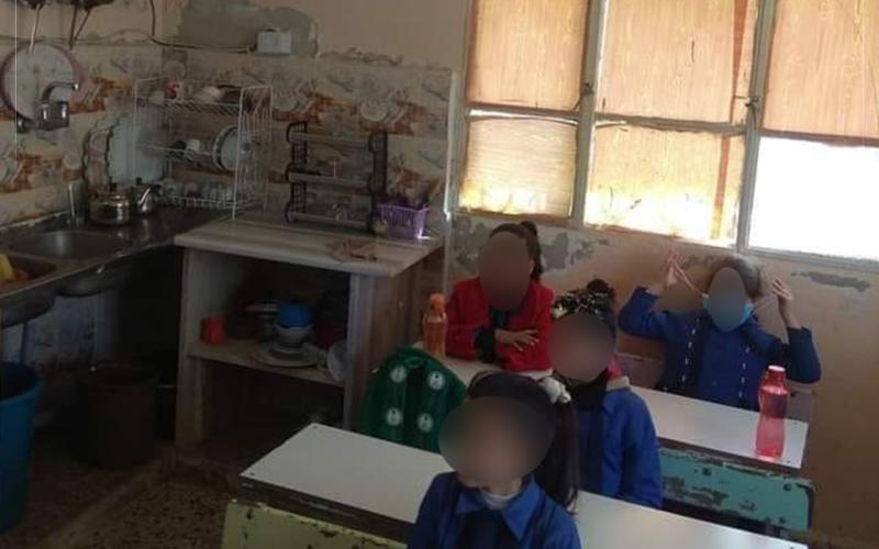 وأضاف أن المدرسة موجودة في مبنى مستأجر، والغرفة تشهد صيانة اعتيادية، ونُقل الطلبة إلى “المطبخ” بقرار من مديرة المدرسة، حرصُا منها على تعليم الطلبة.