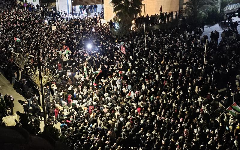 بصورة مفاجئة، عاد الزّخم الشديد للاعتصامات والمسيرات إلى الشارع الأردني، في ليالي رمضان، لدعم موقف أهل غزّة. ومنذ أيام، يحاول آلاف المعتصمين ليلاً أمام مسجد الكالوتي، بالقرب من سفارة الكيان الإسرائيلي، اقتحام السفارة، بينما يحول الأمن دون ذلك، ما يؤدّي إلى بعض الصدامات والمواجهات والاعتقالات. قد يبدو الأمر طبيعياً، فهنالك شارع هائج مائج غاضب محتقن نتيجة الإبادة الجماعية في غزّة والخذلان العربي وضعف المجتمع الدولي. في المقابل، ثمّة حسابات أكثر تعقيداً وأصعب للسياسات الرسمية، بالرغم من أنّ الموقف الأردني يمثّل حالة متقدّمة، نسبياً، على الأنظمة العربية الأخرى، بما في ذلك السلطة الفلسطينية. في الأثناء، تصعد خطابات بائسة مخجلة في السجال العام على مواقع التواصل الاجتماعي تتخذ طابعاً خطيراً يهدّد السلم المجتمعي، ويعزّز حالة من الاستقطاب الأعمى الهوياتي الذي ينقل المعركة الحقيقية من ساحة الدفاع عن الحقوق الوطنية الفلسطينية ومواجهة حرب الإبادة الإسرائيلية وحماية الأمن الوطني الأردني إلى حساباتٍ أقل من ذلك بكثير، بين أطراف في النظام وأطراف في المعارضة، ما يهدر الصورة الإعلامية (Image) للدور الأردني الدبلوماسي الرائد والخطاب السياسي الأردني المتقدّم في الدفاع عن غزّة ومواجهة الكيان الإسرائيلي دبلوماسياً، ويسيء كثيراً إلى جهود أردنية كبيرة خلال المراحل السابقة.