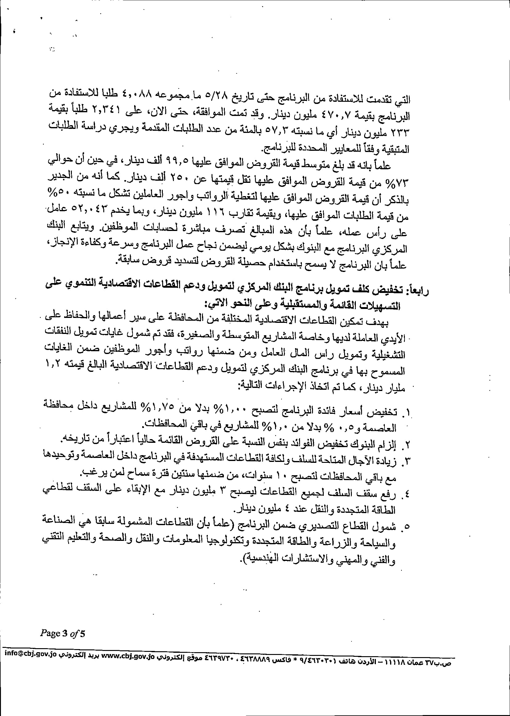 ٢. تحرير سيولة اضافية للبنوك بمبلغ ٥٥٠ مليون دينار مما مكن البنوك من تخفيض اسعار الفائدة التي تتقاضاها على التسهيلات.
