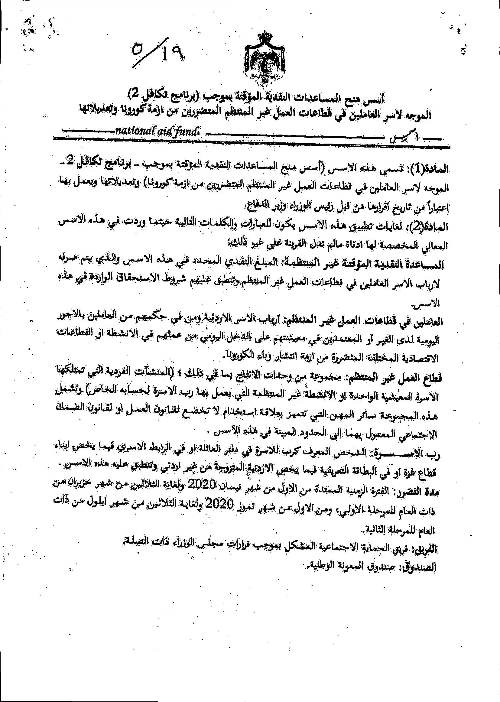وعن المبالغ المصروفة، أوضح انه تم صرف ٢٧ مليون دينار لصندوق المعونة الوطنية لدعم عمال المياومة والعاملين في قطاعات العمل غير المنظم، كما وتم صرف مبلغ مليون دينار لحساب تكية ام علي لبرنامج الدعم الغذائي المستدام الذي يطعم ٣٠٠٠٠ أسرة من غير المنتفعين من صندوق المعونة.