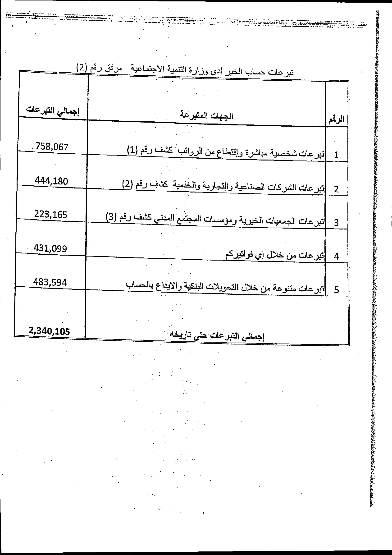 وأكدت الوزيرة ذات معلومة مدير الصندوق انه لم يتم صرف اي نفقات تشغيلية او رواتب من مخصصات الحساب وان عمل ادارة لجنة الحساب تطوعي ولا تتقاضى اي بدل مالي عليه.