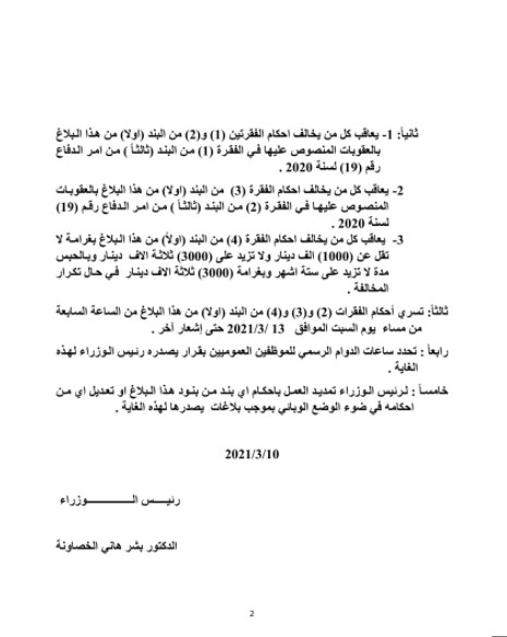 أصدرت الحكومة، مساء الأربعاء، البلاغ رقم 26 لسنة 2021، والذي يتضمن القرارات الجديدة التي أعلنتها خلال المؤتمر الصحافي.