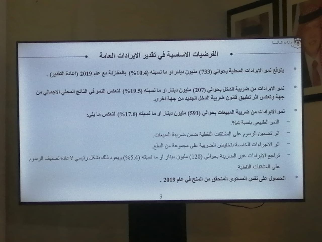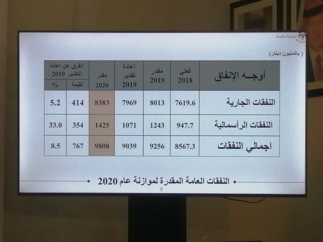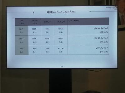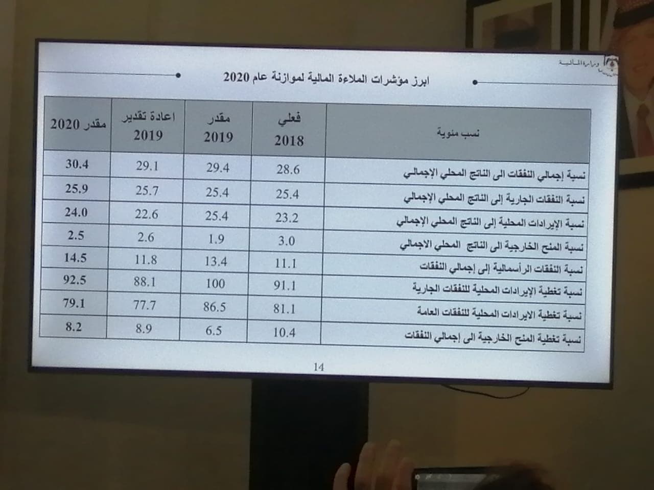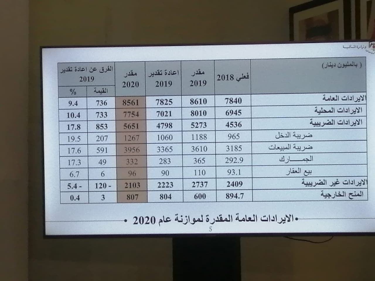 من جانبه أعلن وزير المالية، أن موازنة عام 2020 ستشهد تعديلًا على سلم الرواتب في الجهازين المدني والعسكري.و قال العسعس إن الحكومة تتوقع في 2020 نمو إيرادات ضريبة المبيعات حوالي 591 مليون دينار.