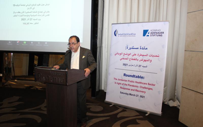 نظم مركز القدس للدراسات السياسية مائدة مستديرة (هجينة) بعنوان "تحديات السيطرة على الوضع الوبائي والنهوض بالقطاع الصحي"، بالتعاون مع مؤسسة كونراد أديناور.