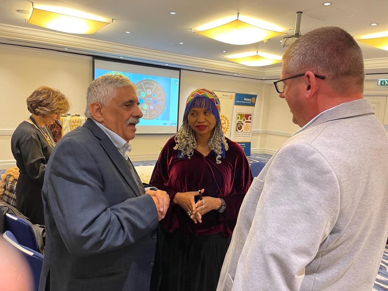 وأوضحت موكوينا أن حُكم محكمة العدل الدولية "يشير إلى أنه يجب على الدول الاخرى أيضًا أن تتصرف بشكل مستقل وفوري لمنع الإبادة الجماعية والتأكد من أنها لا تنتهك هي نفسها اتفاقية الإبادة الجماعية، بما في ذلك مساعدة آخرين في ارتكاب الإبادة الجماعية. وهذا يفرض التزاما على جميع الدول بوقف تمويل وتسهيل الأعمال العسكرية الإسرائيلية، التي تعتبر إبادة جماعية." ووجهت السفيرة التي قدمت أوراق اعتمادها في الأردن في 6 تشرين الأول 2023، تحية خاصة الملك عبد الله الثاني، “على جهوده الحثيثة التي لا تكل” لتحقيق المسار الفلسطيني. "إن جنوب إفريقيا تستمد إلهامًا كبيرًا من قيادته ومن دوره أمينا على المقدسات الإسلامية والمسيحية في القدس". كما أشادت بالعرض الذي قدمه وزير الخارجية أيمن الصفدي حول قضية الاحتلال أمام محكمة العدل الدولية ممثلا عن المملكة الأردنية الهاشمية، ووصفت خطابه بأنه “عميق وثاقب للغاية”. وقد شارك في رعاية هذا الحدث المزدحم عدد من أندية الروتاري في عمان وهي: عمان عمون، الأردن إيكو، قلعة عمان، العاصمة عمان، وعمان جرش. كما شارك محافظ المنطقة الروتارية 2452، بشار حداد بذكر العديد من آليات الدعم التي ينفذها وسينفذها الروتاريون لمساعدة الفلسطينيين في غزة. هذا وقد قدم السيد فريد مشربش نبذة عن مؤتمر المنطقة الروتارية 2452 الحادي عشر القادم ودعى الحضور للمشاركة الفاعلة فيه. ويأتي المؤتمر تحت شعار "فكر أخضر.. عش أخضر" والذي سيعقد في العاصمة الأردنية عمان خلال الفترة 27 - 29 حزيران 2024.