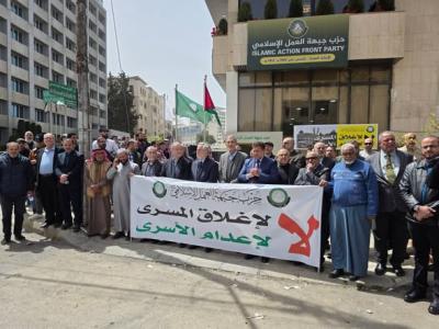 العمل الإسلامي" يقيم وقفة مركزية تندد بإغلاق الأقصى وتطالب بإسقاط قانون “إعدام الأسرى” وتدعو لتحرك أردني وعربي عاجل
