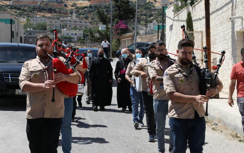 وترأس الاحتفال، وهو التجمّع الديني المسيحي الأوّل من بعد تخفيف القيود جراء جائحة كورونا، النائب البطريركي للاتين المطران وليم شوملي، وحضر القداس الأرشمندريت نادر ساووق ممثلا عن مطران الروم الكاثوليك جوزيف جبارة، راعي الكنيسة الأب يوسف فرنسيس، من رهبان الكلمة المتجسّد، وكهنة المنطقة، وجموع المصلين من كافة أنحاء المملكة.