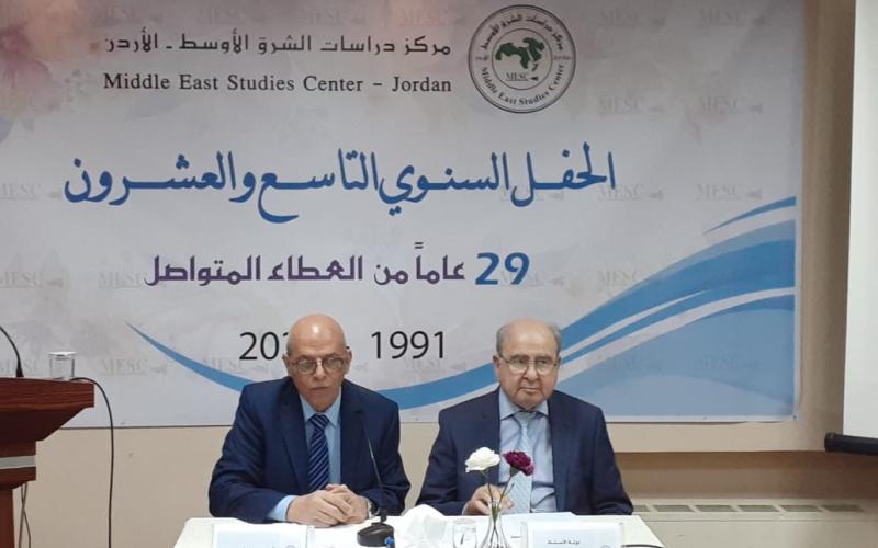 فيما أكد مدير مركز دراسات الشرق الأوسط في كلمة له خلال الحفل على ما تتطلبه المرحلة التي يمر بها الوطن والمنطقة من حاجة ماسة إلى مقاربات وطنية جمعية يشترك فيها الكل الوطني ويتحمل مسؤولياته فيها للعبور إلى برّ الأمان، مع ما يرافق ذلك من سياسة خارجية تحافظ على المكتسبات وتخترق الواقع الإقليمي الصعب بحنكة وأدوات تمتلكها، في سبيل تحقيق مصالح الأردن العليا، وتسهم بخدمة قضايا الأمة والعربية، وعلى رأسها القضية الفسلطينية، والتي تسند ظهرها إلى عمقها الأردني قبل العربي والإسلامي.