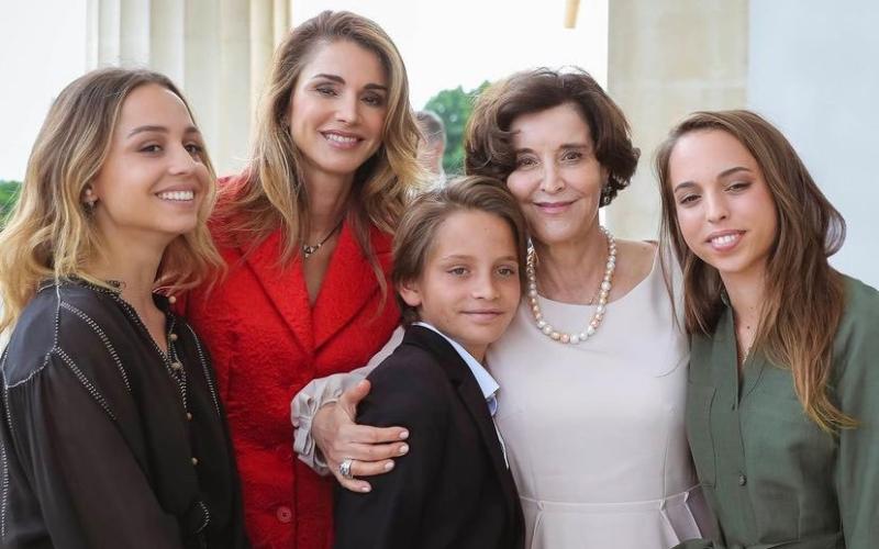 ونشرت الملكة صورة برفقة والدتها وسمو الأميرة إيمان وسمو الأميرة سلمى وسمو الأمير هاشم، عبر حسابها الرسمي في “تويتر”.