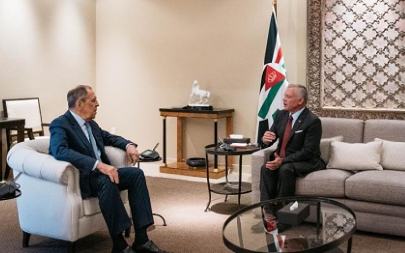 واستعرض الملك ووزير الخارجية الروسي العلاقات الثنائية بين البلدين، والتطورات الإقليمية ذات الاهتمام المشترك. وجرى خلال اللقاء بحث القضية الفلسطينية، وجهود العودة إلى مفاوضات جادة وفاعلة لتحقيق السلام العادل والشامل على أساس حل الدولتين. وأكد جلالة الملك مواصلة الأردن جهوده في حماية المقدسات الإسلامية والمسيحية في القدس، بموجب الوصاية الهاشمية عليها. كما تناول اللقاء جهود حل الأزمة الأوكرانية ومعالجة تبعاتها. حضر اللقاء نائب رئيس الوزراء ووزير الخارجية وشؤون المغتربين أيمن الصفدي، ومدير مكتب جلالة الملك، الدكتور جعفر حسان، والسفير الروسي في عمان غليب ديسياتنيكوف.