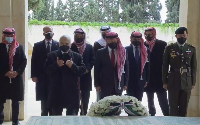 الملك وولي العهد والامراء الحسن وفيصل وعلي وحمزة وهاشم وراشد يزورون الاضرحة الملكية