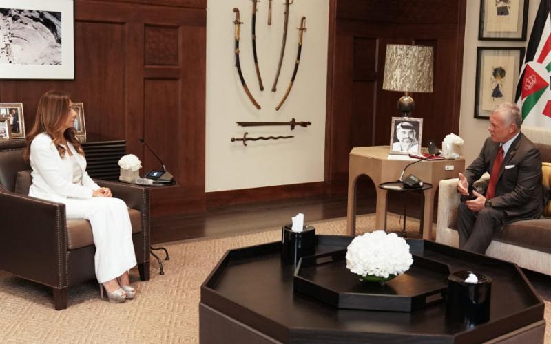 استقبل الملك عبدالله الثاني، في قصر الحسينية الأحد، نائبة رئيس مجلس الوزراء، وزيرة الدفاع ووزيرة الخارجية والمغتربين بالوكالة في حكومة تصريف الأعمال بالجمهورية اللبنانية، زينة عكر.