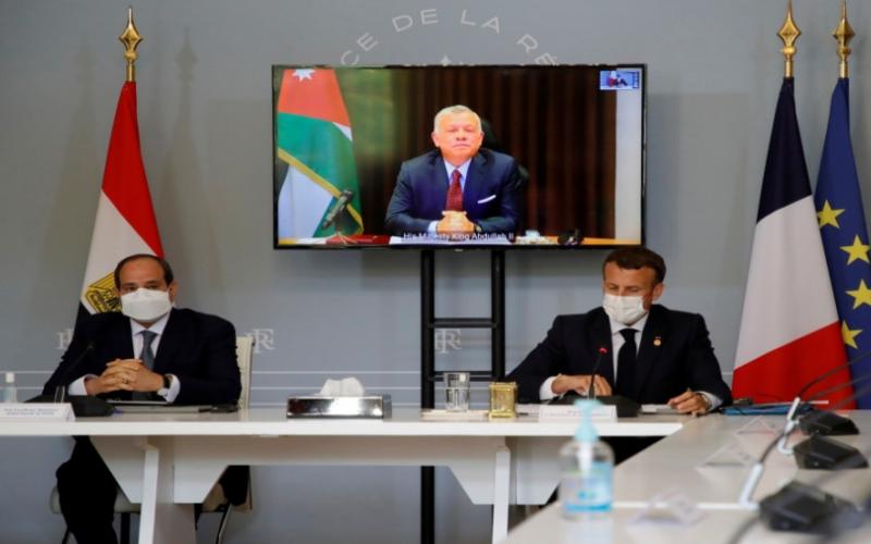 بحث جلالة الملك عبدالله الثاني الثلاثاء، عبر الاتصال المرئي مع الرئيسين المصري عبد الفتاح السيسي والفرنسي إيمانويل ماكرون جهود وقف العدوان الإسرائيلي على غزة.