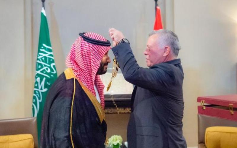 الملك يقدم قلادة الحسين بن علي للأمير محمد بن السلمان