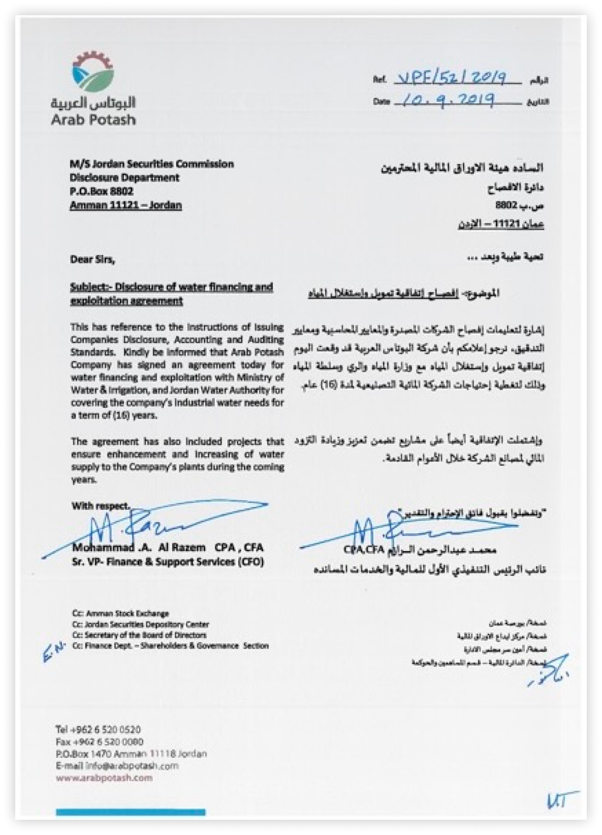 اتفاقيات المياه بين شركة البوتاس العربية مع الحكومة الأردنية