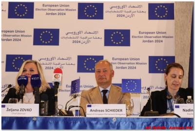 عمان نت - توجه أكثر من 1.6 مليون ناخب أردني في العاشر من أيلول 2024 إلى صناديق الاقتراع في انتخابات شاملة شهدت مستوى عالِ من التنظيم، حيث أجرت الهيئة المستقلة للانتخاب الانتخابات في الوقت المحدد وبكفاءة تامّة. على الرغم من حالة الشك التي تسبب بها الصراع في غزة وتداعياته الإقليمية الأوسع، إلا أن الأردن أظهر التزامه بإجراء الانتخابات في الموعد المحدد"، وفقًا لرئيسة بعثة الاتحاد الأوروبي لمراقبة الانتخابات زيليانا زوفكو خلال مؤتمر صحفي عقدته هنا في عمان حيث قدمت البيان الأولي للبعثة.